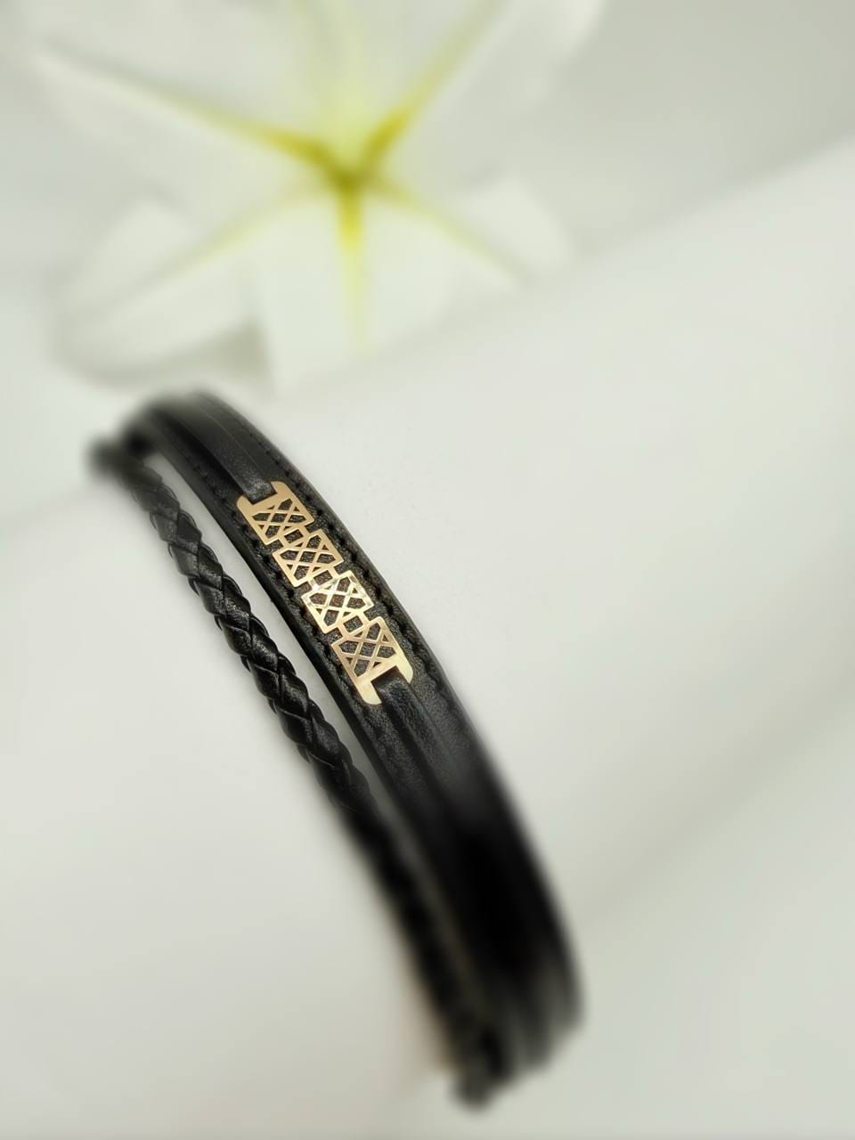 دستبند چرم مستطیل مربع ۴ ضربدر